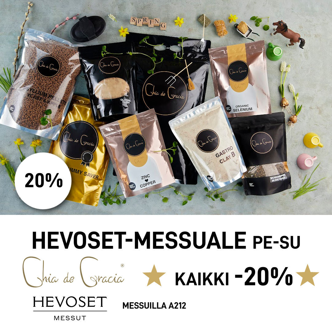 Tarjoamme 100% luonnolliset Chia de Gracia -tuotteet hevosen ja koiran päivittäisen hyvinvoinnin tueksi.
