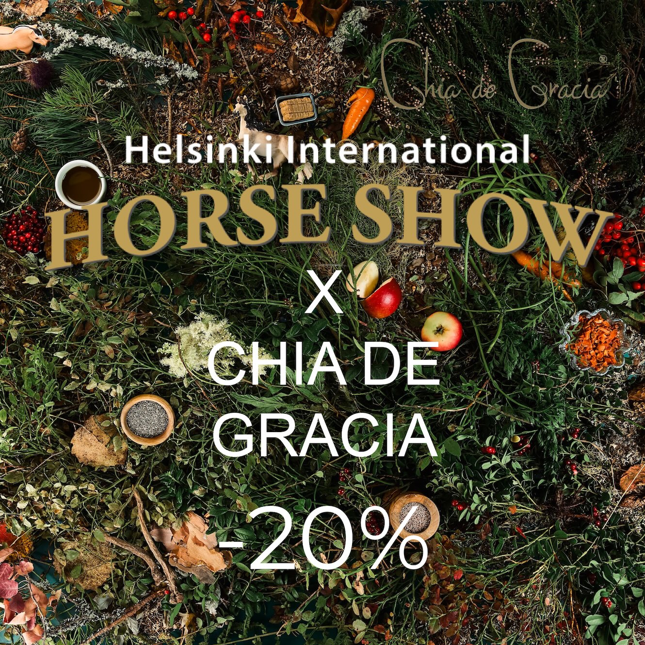 Chia de Gracia on kotimainen luonnollisen ruokinnan asiantuntija. Chia de Gracian laadukkaat yrtit, yrttisekoitukset sekä muut 100 % luonnolliset täydennysrehut tukevat hevosten ja koirien päivittäistä hyvinvointia luonnollisesti ilman lisäaineita tai synteettisiä ainesosia pyrkien mahdollisimman pieneen pakkausjätemäärään.