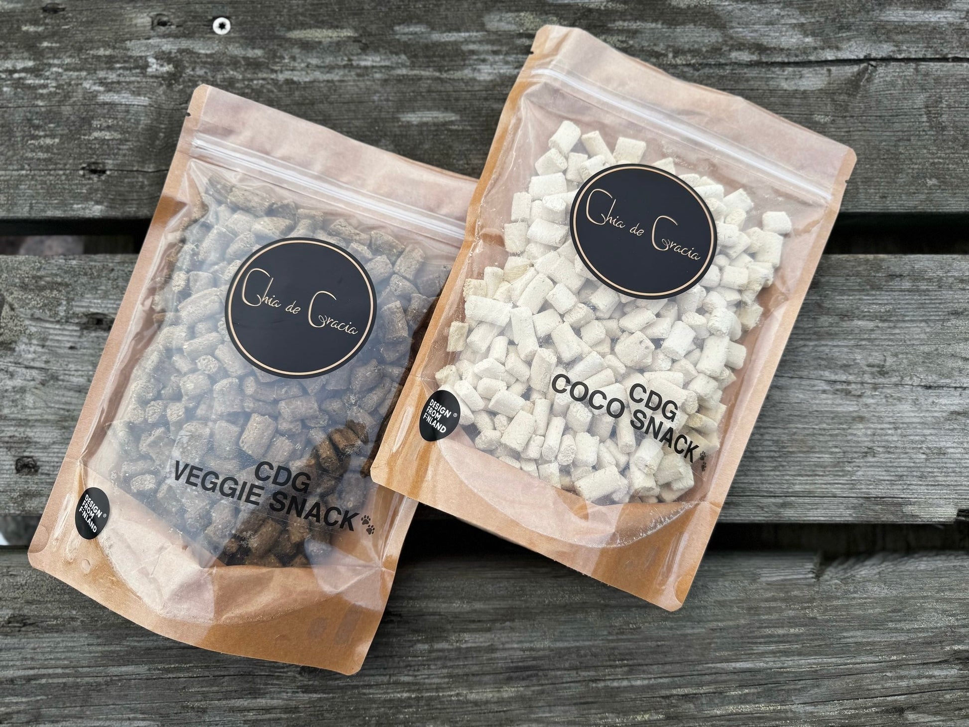 CdG Veggie Snacksit sisältävät vain kasviperäisiä ainesosia. Ne ovat vähärasvaisia ja voivat tukea koirien terveellistä ruokavaliota.